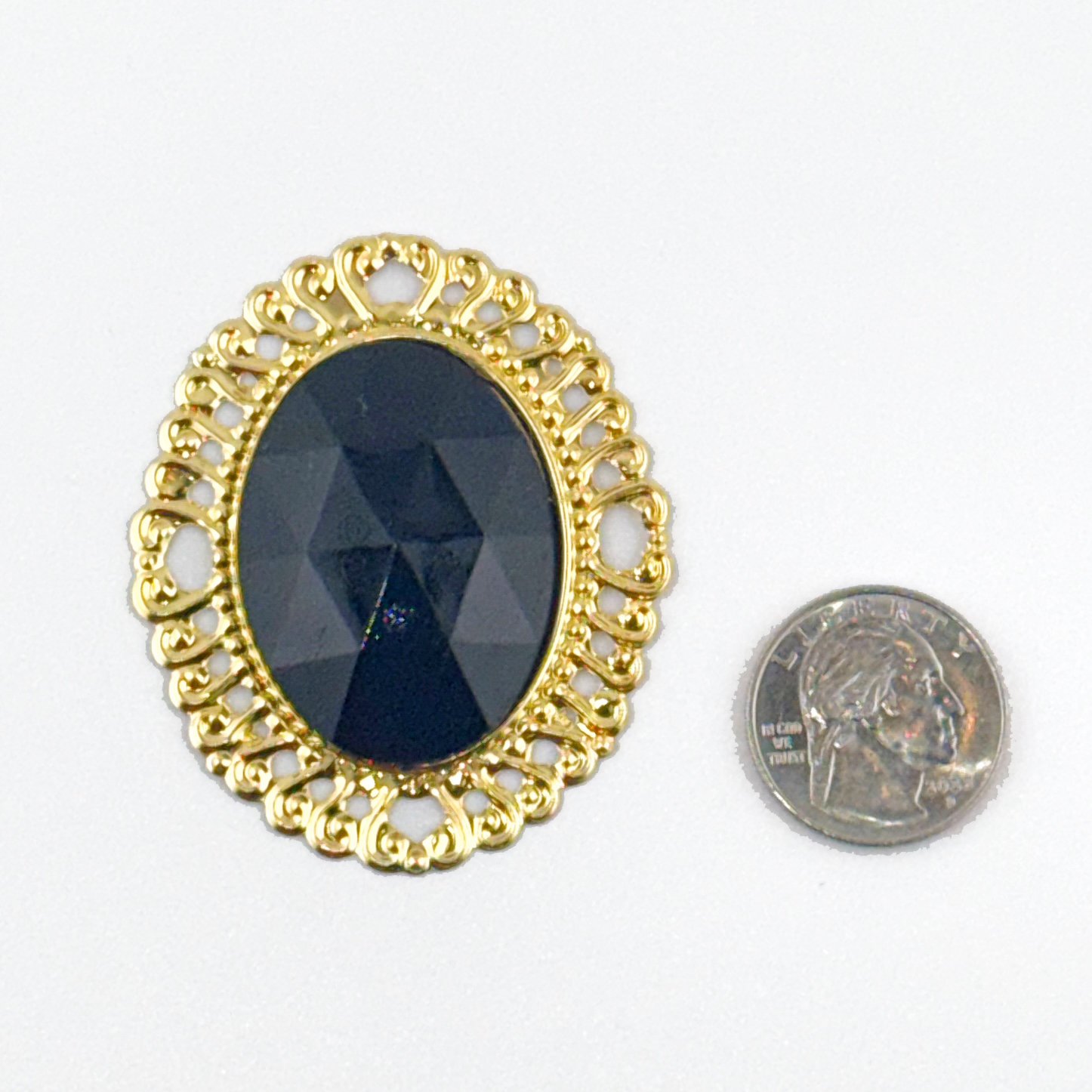 Large Oval Acrylic Gem with Border 2″x1.75″ – – Black/Gold – (25 pc)