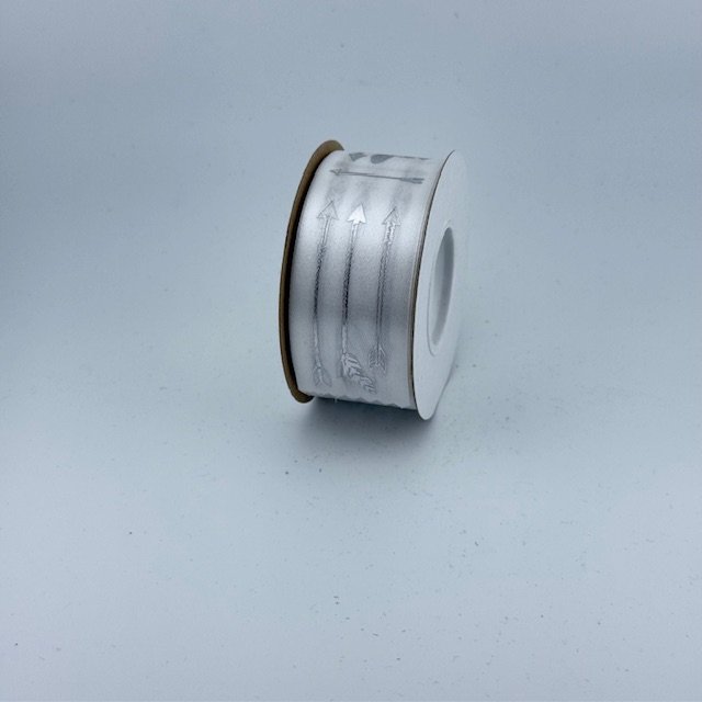 Ribbon – #9 Printed Ribbon – Indian Warrior Arrows – 1 3/8″x25yds – White / Silver
